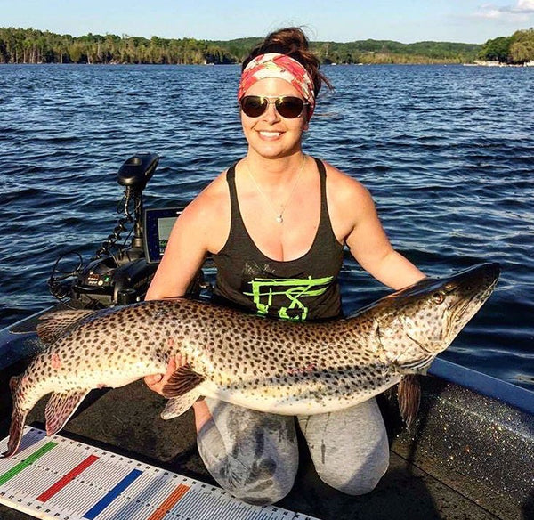 TO MAKE THE HIGHEST QUALITY GEAR THAT WE POSSIBLY CAN. RESULTING IN APPAREL THAT IS FUNCTIONAL, DURABLE, AND SUPER COMFORTABLE. LOOK GOOD, FEEL GOOD, FISH GOOD! WE HOPE TO SEE A PHOTO OF YOU BEHIND A GIANT, WITH THE F8 FLYING PROUD! PICTURED HERE IS SAMANTHA GEROU WITH A 55.75" WHALE. THIS IS WHAT MUSKY DREAMS ARE MADE OF. THANK YOU TO ALL OF OUR CUSTOMERS FOR GROWING OUR BRAND TO WHAT IT IS TODAY, FOR THIS WE ARE ETERNALLY GRATEFUL.