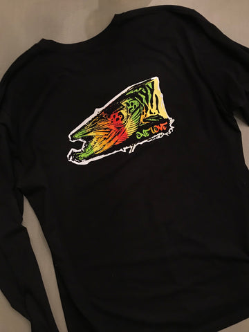 By popular demand we brought back another super soft long sleeve cotton. We partnered with Michigan artist Matthew Stockton on this back print. He named this piece "One Love" - We thought this was perfection, as all of us musky anglers truly love these fresh water beasts!